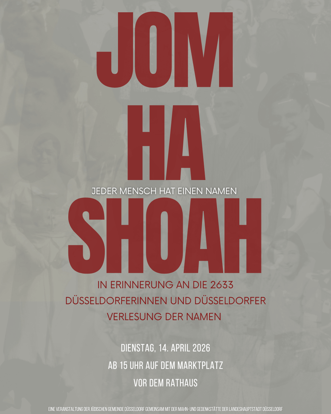 Auch dieses Jahr wird der weltweite Holocaust Gedenktag – Jom HaShoah – von der Jüdischen Gemeinde Düsseldorf in Zusammenarbeit mit der Mahn- und Gedenkstätte begangen.